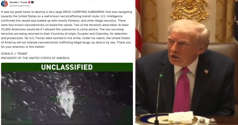 പെന്റഗണ് എക്സില് പങ്കുവെച്ച ഒരു വീഡിയോ ദൃശ്യത്തില്, കടലിലൂടെ സഞ്ചരിക്കുന്ന അര്ദ്ധ മുങ്ങിക്കപ്പലിനെ ലക്ഷ്യമിട്ട് ആക്രമണങ്ങള് നടന്നതായി കാണാം. വ്യാഴാഴ്ച നടന്ന ഈ ആക്രമണത്തില് രണ്ട് പേര് മരിച്ചതായും, രണ്ട് പേരെ യുഎസ് സൈന്യം പിടികൂടിയതായും ട്രംപ് സ്ഥിരീകരിച്ചു. ഇവരെ ഹെലികോപ്റ്ററില് യുഎസ് നാവികസേനയുടെ യുദ്ധക്കപ്പലിലേക്ക് മാറ്റി.