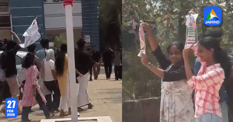 മന്ത്രി വീണ ജോര്ജിനെ കെഎസ് യു പ്രവര്ത്തകര് ആക്രമിക്കുന്ന ദൃശ്യങ്ങള് കാണിക്കുന്നവര്ക്ക് ‘കുഴിമന്തി’ ഓഫര് ചെയ്തുകൊണ്ടുള്ള പ്ലക്കാര്ഡുമായി കെഎസ് യു പ്രവര്ത്തകരും രംഗത്തെത്തി. യൂണിറ്റ് പ്രസിഡന്റ് ദിയ പി, വൈസ് പ്രസിഡന്റ് ആര്യശ്രീ എന്നിവരാണ് പ്ലക്കാര്ഡുകളുമായി ദൃശ്യങ്ങളിലുള്ളത്. മന്ത്രിക്ക് നേരെയുണ്ടായ പ്രതിഷേധത്തിന് പിന്നാലെയാണ് ക്യാമ്പസില് ഇരുവിഭാഗങ്ങളും തമ്മില് വാക്പോര് ശക്തമായത്.