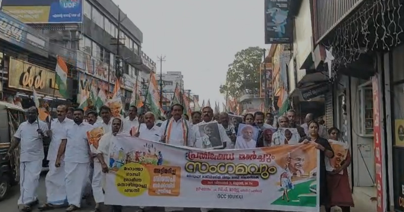 ഇടുക്കി ഡി.സി.സിയുടെ നേതൃത്വത്തില് തൊടുപുഴയില് പ്രതിഷേധ മാര്ച്ചും ധര്ണ്ണയും സംഘടിപ്പിച്ചു. രാജീവ് ഭവനില് നിന്ന് ഗാന്ധി സ്ക്വയറിലേക്ക് നടന്ന മാര്ച്ചിന് ഡി.സി.സി പ്രസിഡന്റ് സി.പി. മാത്യു നേതൃത്വം നല്കി. പദ്ധതിയുടെ സ്വഭാവം തന്നെ മാറ്റുന്ന കേന്ദ്ര നീക്കം ഗ്രാമീണ മേഖലയുടെ സാമ്പത്തിക ഭദ്രത തകര്ക്കുമെന്ന് അദ്ദേഹം പറഞ്ഞു. പുതിയതായി തിരഞ്ഞെടുക്കപ്പെട്ട ജനപ്രതിനിധികളും ഭാരവാഹികളും മാര്ച്ചില് അണിനിരന്നു.