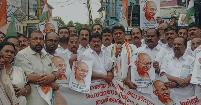 മഹാത്മാഗാന്ധി ദേശീയ ഗ്രാമീണ തൊഴിലുറപ്പ് പദ്ധതിയുടെ പേര് മാറ്റി രാഷ്ട്രപിതാവിനെ തമസ്കരിക്കാനുള്ള കേന്ദ്ര സര്ക്കാര് നീക്കത്തിനെതിരെ സംസ്ഥാനവ്യാപകമായി കോണ്ഗ്രസ് പ്രതിഷേധം. എ.ഐ.സി.സി ആഹ്വാനപ്രകാരം വിവിധ ജില്ലാ കോണ്ഗ്രസ് കമ്മിറ്റികളുടെ നേതൃത്വത്തില് മാര്ച്ചും ധര്ണ്ണയും പ്രതിഷേധ സംഗമങ്ങളും സംഘടിപ്പിച്ചു.