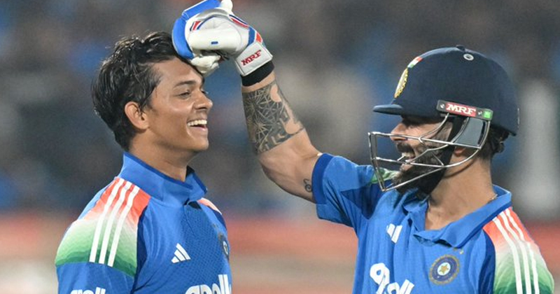 271 എന്ന ലക്ഷ്യത്തിലേക്ക് ബാറ്റുവീശിയ ഇന്ത്യക്കായി രോഹിത് ശര്മ്മയും ജയ്സ്വാളും ചേര്ന്ന് കരുതലോടെയുള്ള തുടക്കമാണ് നല്കിയത്. തുടക്കത്തില് ശ്രദ്ധയോടെ കളിച്ച ജയ്സ്വാളിനെ സാക്ഷിയാക്കി, രോഹിത് സ്കോറിംഗിന്റെ വേഗത ഏറ്റെടുത്തു. വെടിക്കെട്ട് ബാറ്റിംഗിലൂടെ 54 പന്തില് അര്ദ്ധസെഞ്ചുറി തികച്ച രോഹിത് അന്താരാഷ്ട്ര ക്രിക്കറ്റില് 20,000 റണ്സെന്ന അതുല്യ നേട്ടവും കൈവരിച്ചു. 75 റണ്സെടുത്ത രോഹിത്തിന്റെ മടക്കത്തിന് ശേഷം ക്രീസിലെത്തിയ വിരാട് കോലി, തന്റെ ക്ലാസിക് ശൈലിയില് കളിച്ച് ജയ്സ്വാളിന് മികച്ച പിന്തുണ നല്കി.