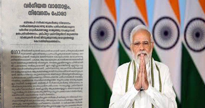 ഹിന്ദുത്വ വർഗീയവാദികൾ തെരുവുകളിൽ അക്രമം അഴിച്ചുവിടുമ്പോൾ പ്രധാനമന്ത്രി നടത്തുന്ന പള്ളി സന്ദർശനങ്ങൾ വെറും പ്രദർശന വസ്തുവാണെന്ന് ദീപിക വിമർശിക്കുന്നു. വിദേശ രാജ്യങ്ങളിലെ ഭരണാധികാരികളെ പ്രീതിപ്പെടുത്താൻ നടത്തുന്ന ഈ സന്ദർശനങ്ങളിൽ ലവലേശം ആത്മാർത്ഥതയില്ല. സന്ദർശനത്തിന് അപ്പുറം, വിശ്വാസികൾ ആക്രമിക്കപ്പെടുമ്പോൾ അതിനെ അപലപിക്കാനോ കർശന നടപടി സ്വീകരിക്കാനോ പ്രധാനമന്ത്രി തയ്യാറാകാത്തത് അദ്ദേഹത്തിന്റെ നിശബ്ദത കുറ്റകരമാണെന്നതിന് തെളിവാണെന്ന് മുഖപത്രം ചൂണ്ടിക്കാട്ടുന്നു.