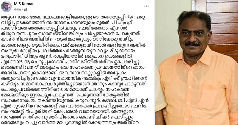 എം എസ് കുമാറിന്റെ ഫേസ് ബു്ക് പോസ്റ്റ് പൂര്ണ്ണരൂപം