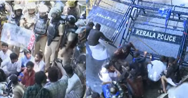 വടക്കാഞ്ചേരി എസ്.എച്ച്.ഒ. ഷാജഹാനെതിരെ നടപടി ആവശ്യപ്പെട്ടാണ് കെ.എസ്.യു. പ്രതിഷേധം. മുഖ്യമന്ത്രിയുടെയും എസ്.എച്ച്.ഒ. ഷാജഹാന്റെയും കോലം പ്രതിഷേധക്കാര് കത്തിച്ചു. പ്രവര്ത്തകര് ബാരിക്കേഡ് മറികടക്കാന് ശ്രമിച്ചതോടെയാണ് പ്രതിഷേധം സംഘര്ഷത്തില് കലാശിച്ചത്. ജലപീരങ്കി പ്രയോഗിച്ചിട്ടും പ്രവര്ത്തകര് പിരിഞ്ഞുപോകാന് തയ്യാറാകാത്തതിനെ തുടര്ന്നാണ് പൊലീസ് കണ്ണീര് വാതകം പ്രയോഗിച്ചത്. പ്രതിഷേധത്തില്നിന്ന് പിന്നോട്ടില്ലെന്ന് കെ.എസ്.യു. പ്രവര്ത്തകര് വ്യക്തമാക്കി.