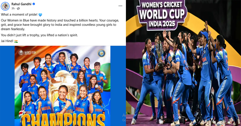 ഇന്ത്യന് വനിതകള് ലോകകപ്പ് ഫൈനലില് ഉയര്ത്തിയത് വെറും ട്രോഫിയല്ല, രാജ്യത്തിന്റെ ആത്മാവിനെയാണെന്ന് ലോക്സഭ പ്രതിപക്ഷ നേതാവ് രാഹുല് ഗാന്ധി. നീലക്കുപ്പായമണിഞ്ഞെത്തിയ വനിതകള് ചരിത്രം സൃഷ്ടിച്ചു. കോടിക്കണക്കിന് ഹൃദയങ്ങളെ സ്പര്ശിച്ചു. എണ്ണമറ്റ പെണ്കുട്ടികളെ നിര്ഭയമായി സ്വപ്നം കാണാന് പ്രചോദിപ്പിച്ചുവെന്നും അദ്ദേഹം കൂട്ടിച്ചേര്ത്തു. ഇത് അഭിമാന നിമിഷമാണെന്നും ഫെയ്സബുക്ക് കുറിപ്പില് പറയുന്നു.