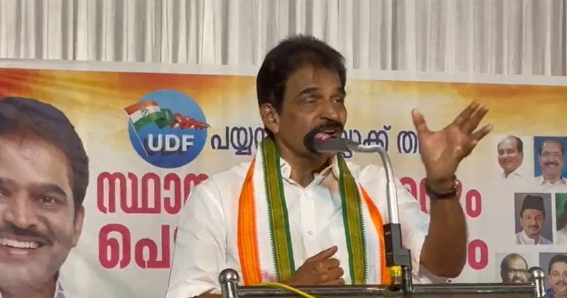 സംസ്ഥാനത്തെ സാമൂഹ്യ അന്തരീക്ഷം തകര്‍ന്നിരിക്കുകയാണ്. വരാനിരിക്കുന്ന തദ്ദേശ തിരഞ്ഞെടുപ്പില്‍ പയ്യന്നൂരില്‍ ഉള്‍പ്പെടെ മാറ്റത്തിന്റെ കാറ്റ് വീശും. കെ.സി. വേണുഗോപാല്‍ ചടങ്ങില്‍വെച്ച് പയ്യന്നൂര്‍ നഗരസഭയിലെ യു.ഡി.എഫ് പ്രകടനപത്രിക പ്രകാശനം ചെയ്തു. കരിവെള്ളൂര്‍ പഞ്ചായത്തിന്റെ എല്‍.ഡി.എഫ്. ഭരണത്തിന് എതിരായ കുറ്റപത്രവും അദ്ദേഹം പുറത്തിറക്കി. രാജ്മോഹന്‍ ഉണ്ണിത്താന്‍ എം.പി., ഡി.സി.സി. പ്രസിഡന്റ് മാര്‍ട്ടിന്‍ ജോര്‍ജ്, കെ.പി.സി.സി. ജനറല്‍ സെക്രട്ടറി സോണി സെബാസ്റ്റ്യന്‍ ഉള്‍പ്പെടെയുള്ള നേതാക്കള്‍ ചടങ്ങില്‍ സംസാരിച്ചു.