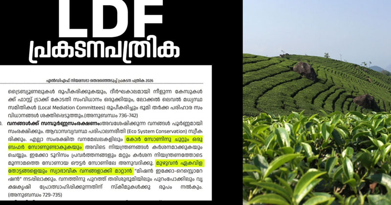 സർക്കാർ കൊട്ടിലോഷിച്ച് കൊണ്ടുവന്ന നിയമങ്ങൾ കൊണ്ട് ഇടുക്കി ജനതക്ക് ഒരു പ്രയോജനവുമുണ്ടായില്ലെന്ന് സാരം. തിരഞ്ഞെടുപ്പ് വിജ്ഞാപനം വന്ന ദിവസം തന്നെയാണ് 2024 ജൂൺ 7 ന് മുമ്പ് പട്ടയം ലഭിച്ച ഭൂമിയിൽ നിർമാണങ്ങൾക്ക് അനുമതി നൽകുന്ന രണ്ടാമത്തെ ചട്ടവും വിജ്ഞാപനം ചെയ്തത്. തിരഞ്ഞെടുപ്പ് ചുമതലയിലായതോടെ ഉദ്യോഗസ്ഥർ തിരക്കിലാണ് ഇതാണ് ഇടത് മുന്നണിയുടെ മറ്റൊരു പൊയ്മുഖം പുറത്തായത്. അടുത്ത സർക്കാർ ചുമതലയേൽക്കുമ്പോൾ മാത്രമേ ഇക്കാര്യത്തിൽ തീരുമാനമുണ്ടാകുകയുള്ളു. 2023 ൽ പിണറായി സർക്കാർ കൊണ്ട് വന്ന ഭൂപതിവ് നിയമ ഭേദഗതിയും 2025 ൽ കൊണ്ടുവന്ന നിയമ ചട്ടങ്ങളും റദ്ദ് ചെയ്ത് ജനങ്ങളുടെ ആശങ്ക പരിഹരിക്കാൻ സമഗ്രമായ നിയമനിർമാണം നടത്തുമെന്ന യു ഡി എഫിൻ്റെ പ്രകടനപത്രിക ലെ വാഗ്ദാനം ഇടത് മുന്നണിയെ വലിയ പ്രതി സന്ധിയിലേക്കാണ് തള്ളിവിട്ടിരിക്കുന്നത്.