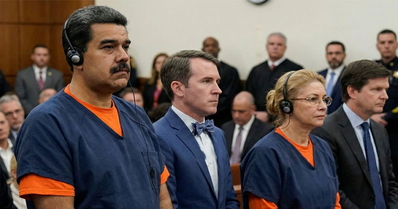 മെക്സിക്കോയിലെയും കൊളംബിയയിലെയും കൊടും കുറ്റവാളികളായ ലഹരി മാഫിയാ സംഘങ്ങളുമായി ചേര്ന്ന് മഡൂറോ കൊക്കെയ്ന് കടത്തിന് കൂട്ടുനിന്നുവെന്നാണ് അമേരിക്കയുടെ കണ്ടുപിടുത്തം. മഡൂറോയുടെ അഭാവത്തില് വൈസ് പ്രസിഡന്റ് ഡെല്സി റോഡ്രിഗസ് വെനസ്വേലയുടെ താല്ക്കാലിക പ്രസിഡന്റായി ചുമതലയേറ്റു. മഡൂറോയ്ക്ക് പൂര്ണ്ണ പിന്തുണ പ്രഖ്യാപിച്ചാണ് ഡെല്സി അധികാരം ഏറ്റെടുത്തിരിക്കുന്നത്. കോടതി നടപടികള് നടക്കുമ്പോള് പുറത്ത് മഡൂറോയെ അനുകൂലിച്ചും പ്രതികൂലിച്ചും മുദ്രാവാക്യങ്ങളുമായി നിരവധിപ്പേര് തടിച്ചുകൂടിയിരുന്നു.