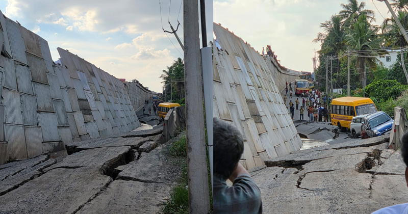 കൊല്ലത്ത് ദേശീയപാത തകര്‍ന്നു; സര്‍വീസ് റോഡ് ഇടിഞ്ഞുതാണു, ഗതാഗതം സ്തംഭിച്ചു