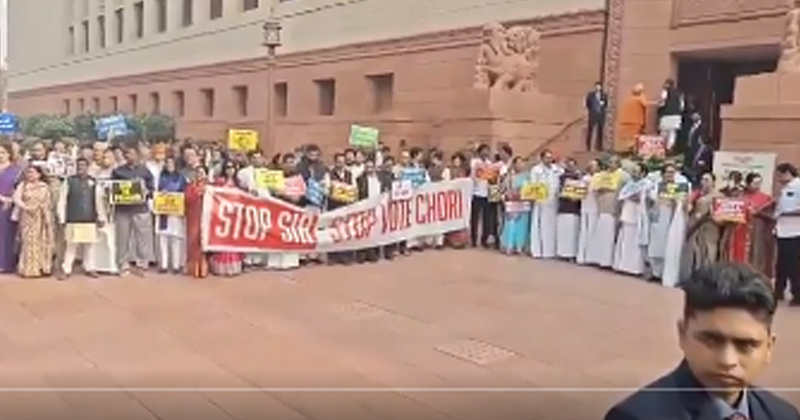 ശീതകാല സമ്മേളനത്തിന്റെ രണ്ടാം ദിവസമായ ഇന്ന് ‘എസ്.ഐ.ആര്‍’ വിഷയത്തില്‍ കോണ്‍ഗ്രസ്സും ഇന്ത്യ മുന്നണിയിലെ മറ്റ് എംപിമാരും പാര്‍ലമെന്റിന് പുറത്തും പ്രതിഷേധം സംഘടിപ്പിച്ചു. സഭ നടപടികള്‍ക്ക് മുന്നോടിയായി പാര്‍ലമെന്റിന്റെ മകര ദ്വാറിന് പുറത്ത് നേതാക്കള്‍ തങ്ങളുടെ പ്രതിഷേധം അറിയിച്ചു.