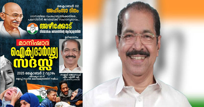 അഹിംസാ ദിനം കൂടിയായ ഇന്ന് ഗാസയിലെ വംശഹത്യക്കെതിരെയും പലസ്തീന് ജനതയ്ക്ക് സഹാനുഭാവം പ്രകടിപ്പിച്ചുകൊണ്ടുമുള്ള ഐക്യദാര്ഢ്യ സദസ്സാണ് നടക്കുന്നത്. പരിഹരിക്കാന് ശ്രമം നടക്കുമ്പോഴൊക്കെ വഷളായിക്കൊണ്ടിരിക്കുന്ന സംഘര്ഷ മേഖലയാണ് ഗാസാ ഉള്പ്പെടുന്ന പ്രദേശം. പട്ടിണി മരണങ്ങളില് ഏറ്റവും കൂടുതല് രേഖപ്പെടുത്തിയിട്ടുള്ളത് കുഞ്ഞുങ്ങളുടെ കണക്കാണ്. ഗാന്ധിജി എന്നും ഉയര്ത്തിപ്പിടിച്ചിരുന്ന അഹിംസയെ സൂചിപ്പിച്ചുകൊണ്ടാണ് കോണ്ഗ്രസ് ഐക്യദാര്ഢ്യം പ്രഖ്യാപിച്ചിരിക്കുന്നത്.