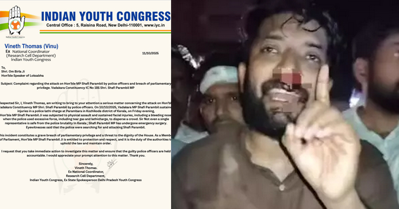 ഷാഫി പറമ്പില്‍ എംപിക്കെതിരായ പൊലീസ് അതിക്രമം: ലോക്‌സഭാ സ്പീക്കര്‍ക്ക് പരാതി നല്‍കി യൂത്ത് കോണ്‍ഗ്രസ്