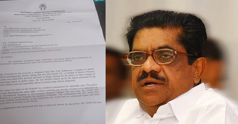 കുന്നംകുളത്ത് യൂത്ത് കോണ്ഗ്രസ് നേതാവ് വി.എസ്. സുജിത്തിനെതിരായ പൊലീസ് അതിക്രമത്തില് കെ.പി.സി.സി. മുന് പ്രസിഡന്റ് വി.എം. സുധീരന് നല്കിയ പരാതിയില് ദേശീയ മനുഷ്യാവകാശ കമ്മീഷന് ഇടപെട്ടു. 2025 സെപ്റ്റംബര് 30-ന് ഡയറക്ടര് ജനറല് ഓഫ് പോലീസിന് കമ്മീഷന് അയച്ച കത്തിലാണ് നടപടി.
