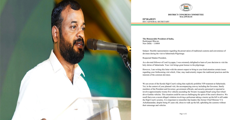 മുന്കാലങ്ങളിലെ സന്ദര്ശന ശ്രമങ്ങളും കത്തില് ഇ.പി. രാജീവ് ഓര്മ്മിപ്പിച്ചു. മുന് പ്രധാനമന്ത്രി ഇന്ദിരാഗാന്ധി ശബരിമല സന്ദര്ശിക്കാന് ആഗ്രഹം പ്രകടിപ്പിച്ചപ്പോള്, ‘ആചാര ലംഘനം’ ആരോപിച്ച് ബി.ജെ.പി. നേതാവ് കുമ്മനം രാജശേഖരന്റെ നേതൃത്വത്തില് ശക്തമായ സമരം നടത്തിയ ചരിത്രം കത്തില് എടുത്തുപറയുന്നുണ്ട്. ഭരണഘടനാ പദവിയിലുള്ള ഒരാള് ആചാരങ്ങളെ മാനിക്കാതെ ഇത്തരം സൗകര്യങ്ങള് ഉപയോഗിക്കുന്നത് ഇരട്ടത്താപ്പാണെന്നാണ് ആരോപണം.