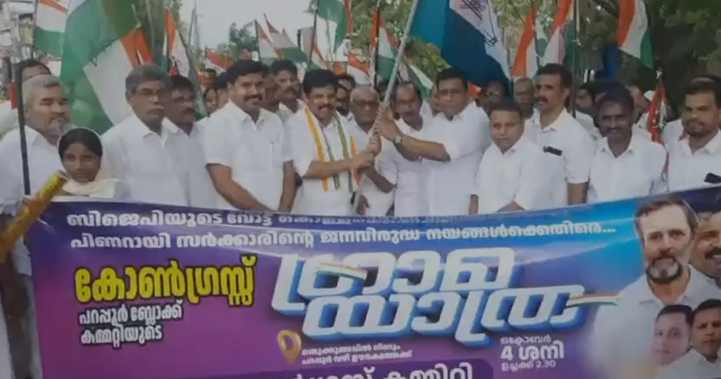 മലപ്പുറം: ബി.ജെ.പി.യുടെ വോട്ട് കൊള്ളക്കെതിരേയും സംസ്ഥാന സര്ക്കാരിന്റെ ജനവിരുദ്ധ നയങ്ങള്ക്കെതിരേയും പ്രതിഷേധമുയര്ത്തി മലപ്പുറത്ത് കോണ്ഗ്രസ് ബ്ലോക്ക് കമ്മിറ്റിയുടെ നേതൃത്വത്തില് ഗ്രാമയാത്ര ആരംഭിച്ചു. പറപ്പൂര് ബ്ലോക്ക് കോണ്ഗ്രസ് കമ്മിറ്റിയാണ് യാത്ര സംഘടിപ്പിച്ചത്.