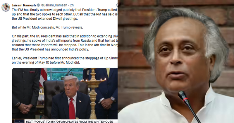 ‘പ്രധാനമന്ത്രി ഒടുവില് പ്രസിഡന്റ് ട്രംപ് വിളിച്ചെന്നും ഇരുവരും സംസാരിച്ചെന്നും പരസ്യമായി അംഗീകരിച്ചു. എന്നാല് യുഎസ് പ്രസിഡന്റ് ദീപാവലി ആശംസകള് കൈമാറി എന്ന് മാത്രമാണ് പ്രധാനമന്ത്രി പറഞ്ഞത്. മോദി മറച്ചുവെക്കുമ്പോള് ട്രംപ് വെളിപ്പെടുത്തുന്നു,’ ജയറാം രമേശ് എക്സില് കുറിച്ചു.