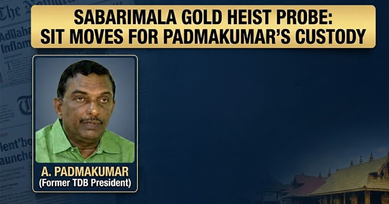 ശബരിമല സ്വര്‍ണ്ണക്കൊള്ള: പത്മകുമാറിനെ കസ്റ്റഡിയില്‍ വാങ്ങാന്‍ എസ്.ഐ.ടി; കോടതിയില്‍ ഇന്ന് അപേക്ഷ നല്‍കും