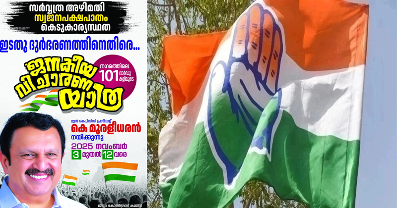 ഇടത് ദുര്ഭരണത്തിനെതിരെ ശക്തമായ പ്രചാരണം ലക്ഷ്യമിട്ട് കോണ്ഗ്രസ് നേതാവ് കെ.മുരളീധരന് നയിക്കുന്ന ജനകീയ വിചാരണ യാത്രയ്ക്ക് ഇന്ന് തുടക്കമാകും. ഇടതിനെതിരെയുള്ള വിചാരണ യാത്ര ഇന്ന് മുതല് നവംബര് 12 വരെ നടത്തും. തിരുവനന്തപുരം നഗരസഭ ഭരണത്തില് സര്വ്വത്ര അഴിമതി, സ്വജനപക്ഷപാതം, കെടുകാര്യസ്ഥത എന്നിവ നിലനില്ക്കുന്ന സാഹചര്യത്തിലാണ് യുഡിഎഫിന്റെ സമരയാത്ര. നഗരത്തിലെ 101 വാര്ഡുകളിലൂടെ യാത്ര നടത്തും.