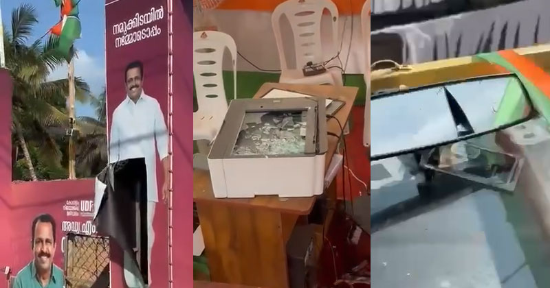 ബോർഡുകളും,പര്യടന വാഹനവും,ലൈറ്റുകളും,കമ്പ്യൂട്ടർ,പ്രിൻറർ എന്നിവയടക്കം തകർത്ത നിലയിലാണ്.ഇന്ന് പുലർച്ചെ പ്രവർത്തകർ ഇല്ലാതിരുന്ന സമയത്താണ് അക്രമം നടന്നതെന്നാണ് സംശയിക്കുന്നത്.പാർട്ടി പ്രവർത്തകർ പോലീസിൽ പരാതി നൽകി.വിൻസെന്റിന്റെ ജനസമ്മതിയിലും പ്രചരണ രംഗത്തെ വലിയ മുന്നേറ്റത്തിലും വിറളി പൂണ്ട സിപിഎം ബിജെപി കൂട്ടുകെട്ട് സമാനമായ പല അതിക്രമങ്ങളും മണ്ഡലത്തിൽ പലകുറി നടത്തിയിട്ടുണ്ട്.