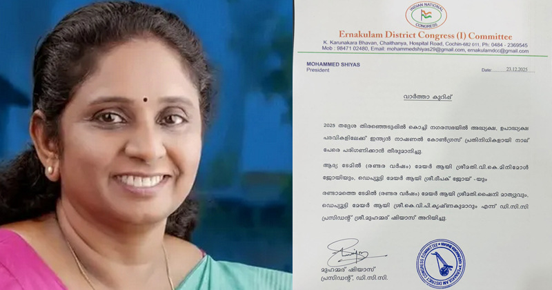 വി.കെ മിനിമോള്‍ കൊച്ചി മേയറാകും; ദീപക് ജോയ് ഡെപ്യൂട്ടി മേയര്‍