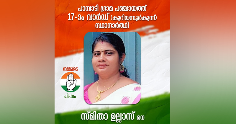 രണ്ടുവര്ഷത്തോളമായി സ്മിത കോണ്ഗ്രസ് പ്രവര്ത്തകയാണ്. നേരത്തെ പാമ്പാടി സര്വീസ് സഹകണബാങ്കിലേക്ക് കോണ്ഗ്രസ് പാനലില് മത്സരിച്ചിരുന്നു. മുന് മുഖ്യമന്ത്രി ഉമ്മന് ചാണ്ടിയോടുള്ള ഇഷ്ടമാണ് സ്ഥാനാര്ഥി ആകാന് കാരണമെന്ന് സ്മിത ഉല്ലാസ് വ്യക്തമാക്കി.