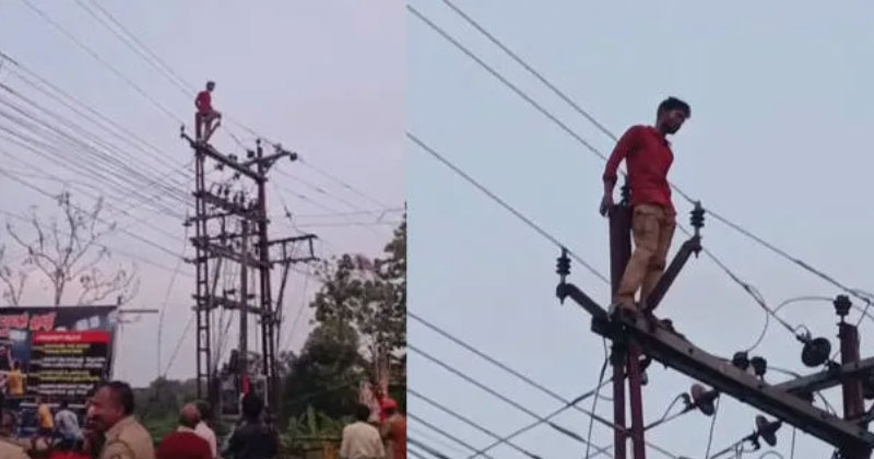 പത്തനംതിട്ട ഊന്നുകല്ലിൽ ഭാര്യയുടെ വീടിന് മുന്നിലെ 11 കെവി ലൈൻ കടന്നുപോകുന്ന ട്രാൻസ്ഫോർമറിന് മുകളിലാണ് ഇരുപത്തിമൂന്നുകാരനായ ആരോമൽ കയറിനിന്നത്. രാത്രി പത്ത് മണിയോടെ തുടങ്ങിയ ആത്മഹത്യാ നാടകം പുലർച്ചെ വരെ നീണ്ടുനിന്നു.വിവാഹിതനായ ആരോമൽ, ഏഴ് മാസം ഗർഭിണിയായ തന്റെ കാമുകിയെ സ്വന്തം വീട്ടിൽ കൊണ്ടുവന്ന് താമസിപ്പിച്ചു. ഇതിൽ പ്രതിഷേധിച്ച് ഭാര്യ സ്വന്തം വീട്ടിലേക്ക് പിണങ്ങിപ്പോയി. ഭാര്യയെ തിരികെ കൊണ്ടുപോകാൻ എത്തിയെങ്കിലും മടങ്ങിപ്പോകില്ലെന്ന നിലപാടിൽ യുവതി ഉറച്ചുനിന്നു. ഇതോടെയാണ് യുവാവ് ആത്മഹത്യാ ഭീഷണി മുഴക്കി ട്രാൻസ്ഫോർമറിന് മുകളിൽ കയറിയത്.